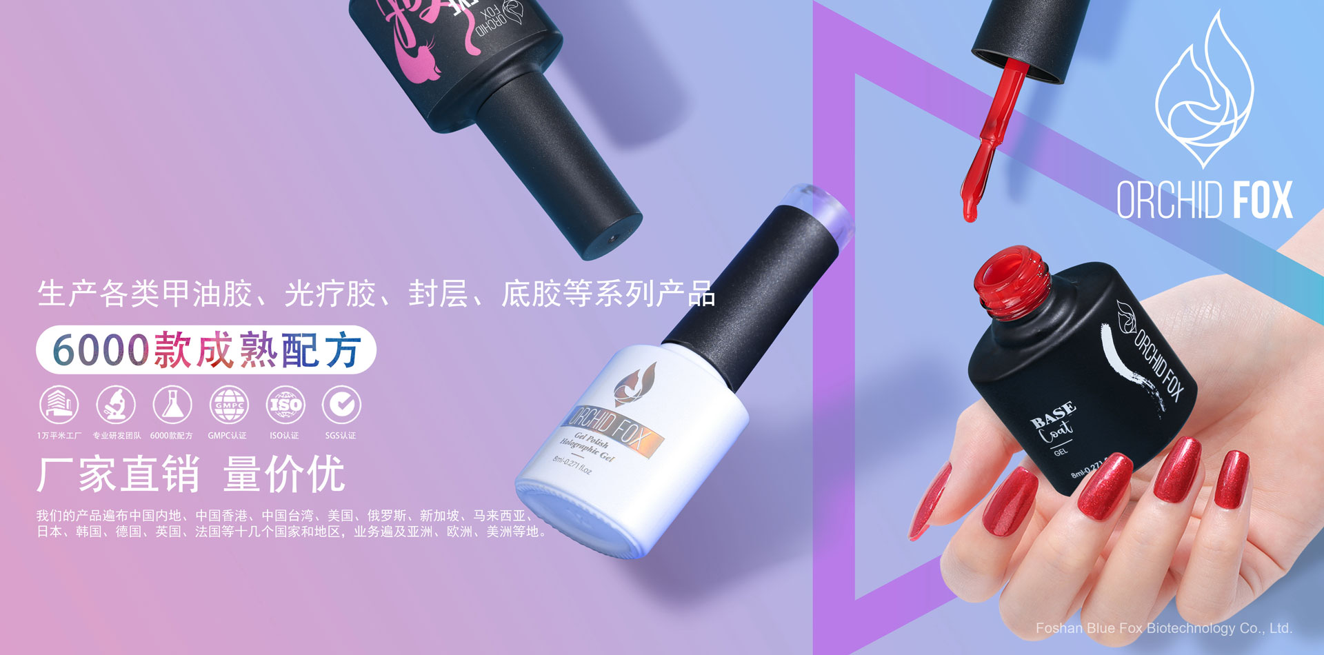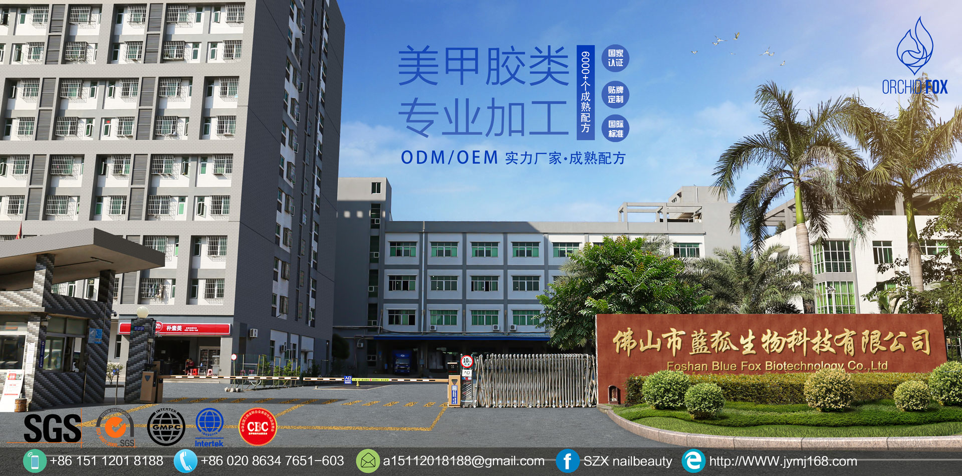 佛山市藍狐生物科技有限公司(原廣州甲逸妝品有限公司)位于廣東省佛山市科技工業園內,擁有自主研發的生產基地,十萬級GMP化妝品生產車間,高級實驗室和研發團隊,和商品進出口權,已獲得歐美ISO22716、GMPC質量體系及SGS認證. 公司致力于美甲產品的研發和生產,主要生產美甲膠、指甲油、Polygel、水晶粉、光療延長膠、底膠、封層、各種功能膠及大包裝基料?,F公司旗下創立“甲逸 ” “十指繡””SZXvenus””ORCHID FOX”美甲品牌,提供各類美甲OEM/ODM代加工基料及產品備案服務,公司擁有雄厚的科研力量和高效的生產能力,同時在不斷提高產品質量并開發新產品,形成了廣泛的銷售網絡,已得到國內外客戶高度認可。 我們始終追求“以人為本,誠實守信”的經營理念,并貫徹于研發、生產、銷售和售后服務的各個環節。公司堅持開發環保優質的美甲產品,倡導美甲行業健康發展!